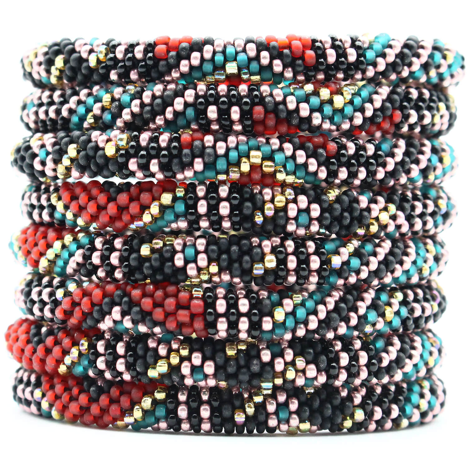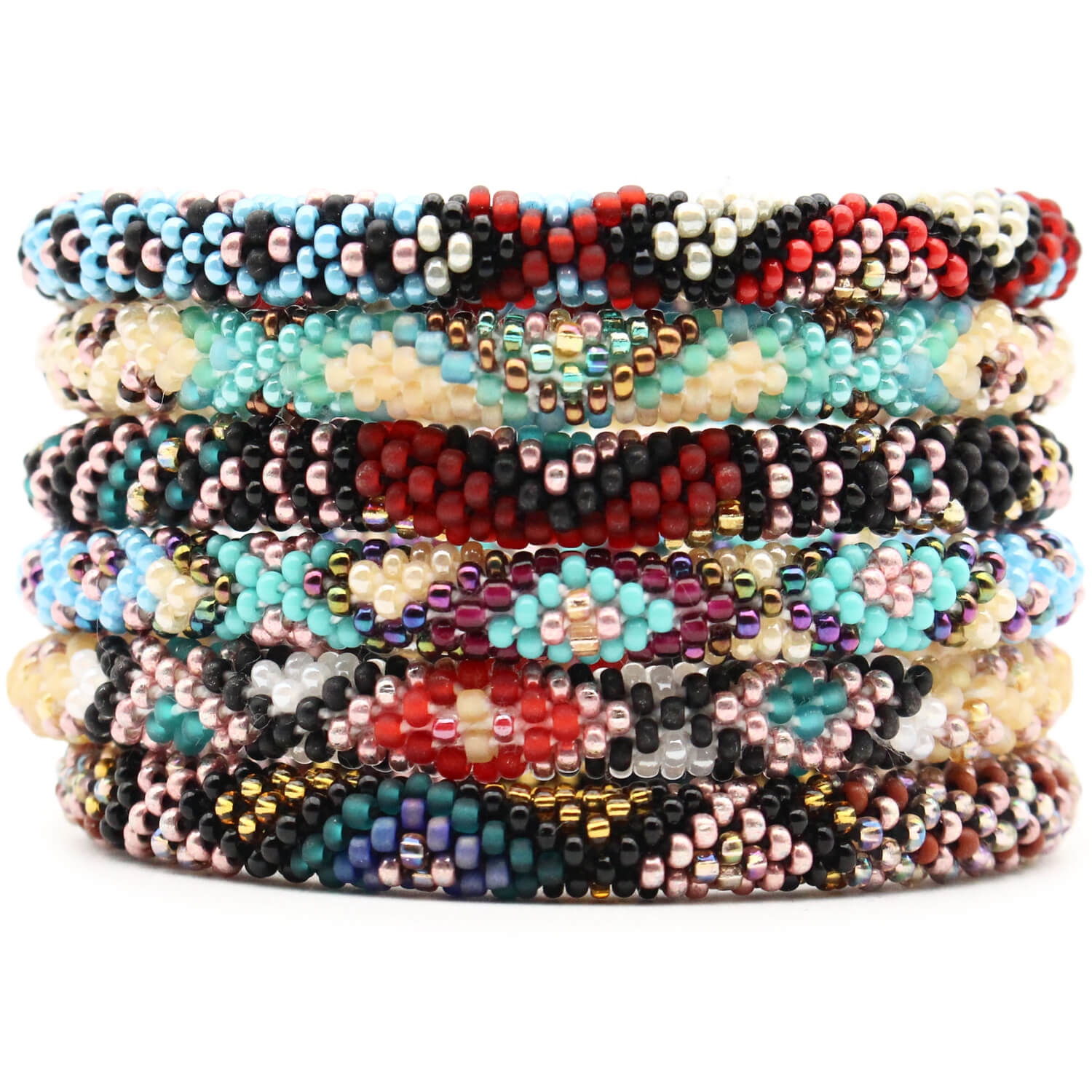 Each glass seed bead is meticulously crocheted in a tubular structure, creating a seamless, durable, and comfortable masterpiece that's perfect for stacking and suitable for all wrist sizes, including plus size jewelry lovers. The metal-free design makes it an ideal arthritis bracelet, ensuring comfort for sensitive skin.
