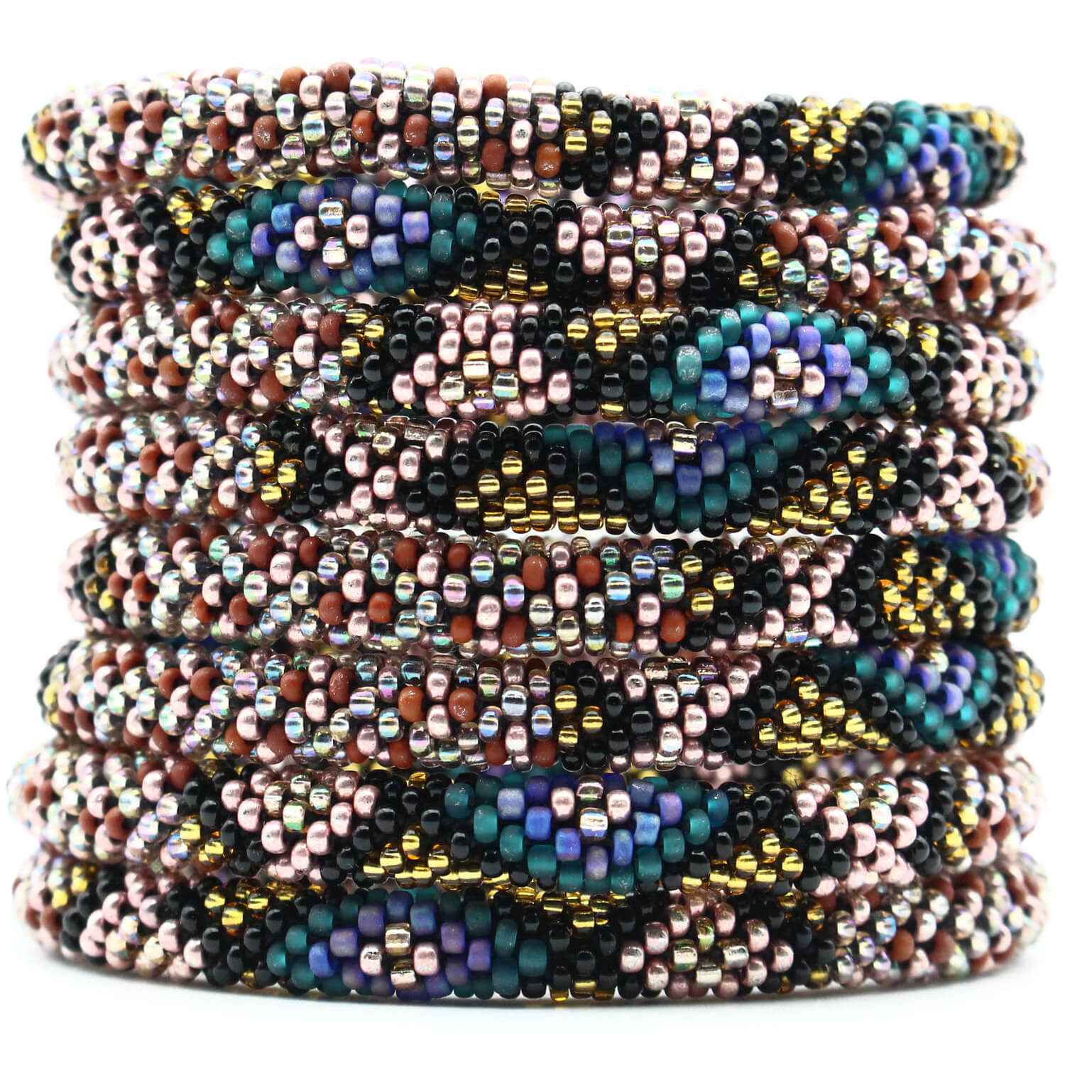 Each glass seed bead is meticulously crocheted in a tubular structure, creating a seamless, durable, and comfortable masterpiece that's perfect for stacking and suitable for all wrist sizes, including plus size jewelry lovers. The metal-free design makes it an ideal arthritis bracelet, ensuring comfort for sensitive skin.