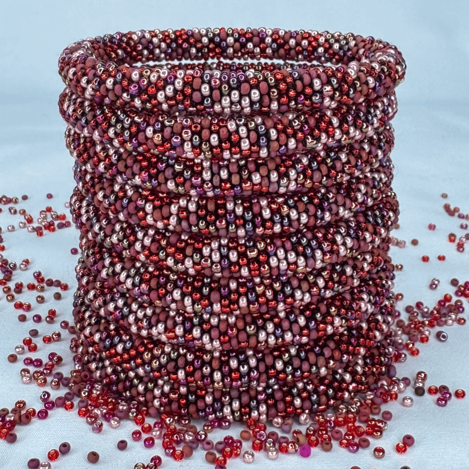 Each bracelet is hand crocheted one bead at a time by our all-women artisan team. No two are exactly alike. Designed to be worn solo or stacked, Bordeaux Nights lets you roll on your perfect number and build a look that feels personal, powerful, and timeless.