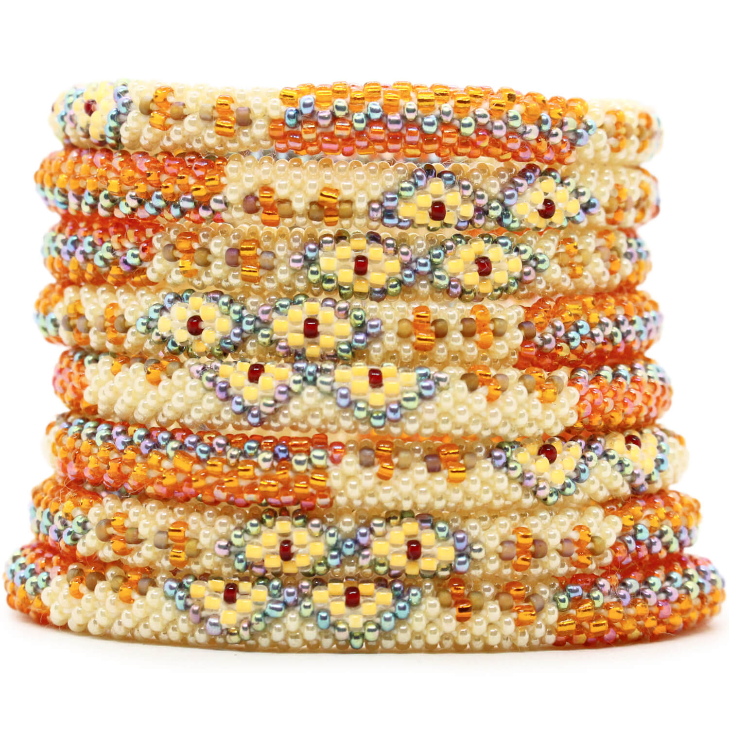 Wear these bracelets to tell your story of where you have been and where you are going. When you roll each of your selected designs onto your wrist, you are creating a beadwork tapestry that is uniquely yours.