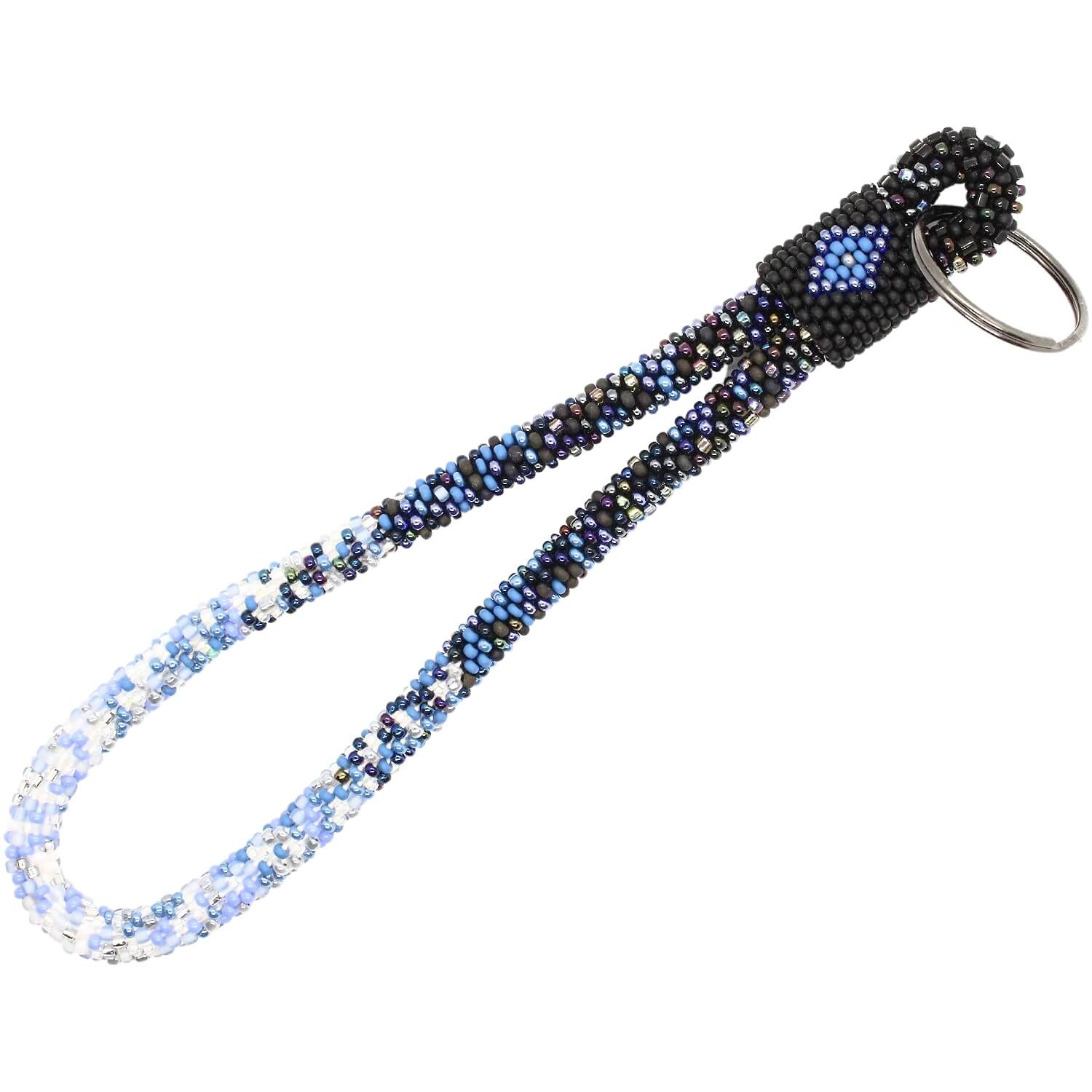 The larger beadwork wrist loop is about 10-11 inches so that you can easily slip it over your hand and wrist to effortlessly keep your keys handy and your actual hands free to tote whatever else you're hauling in your go-getter, rockstar life!