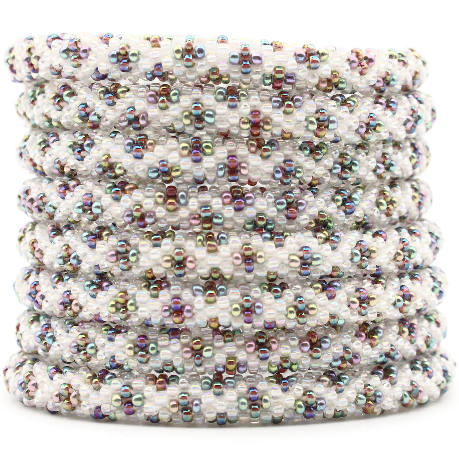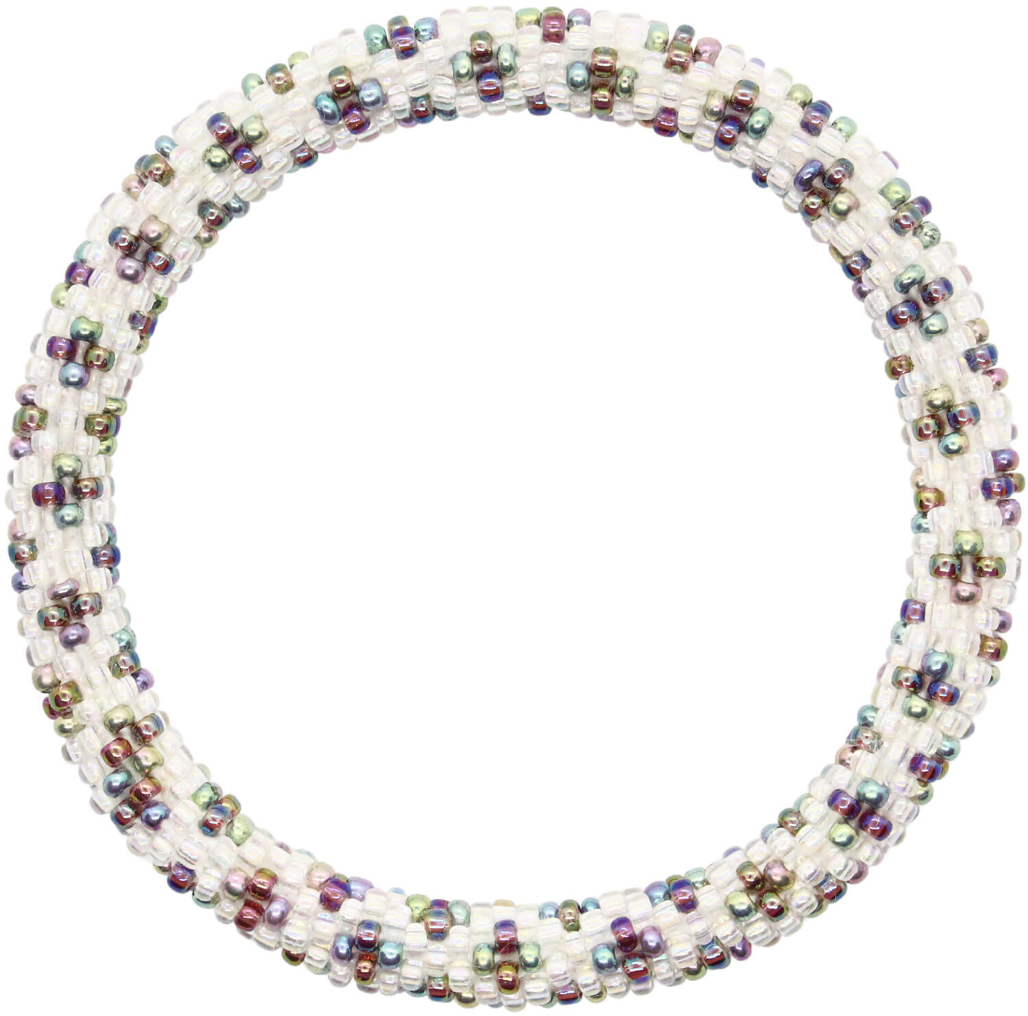 Each glass seed bead is meticulously crocheted in a tubular structure, creating a seamless, durable, and comfortable masterpiece that's perfect for stacking and suitable for all wrist sizes, including plus size jewelry lovers. The metal-free design makes it an ideal arthritis bracelet, ensuring comfort for sensitive skin.
