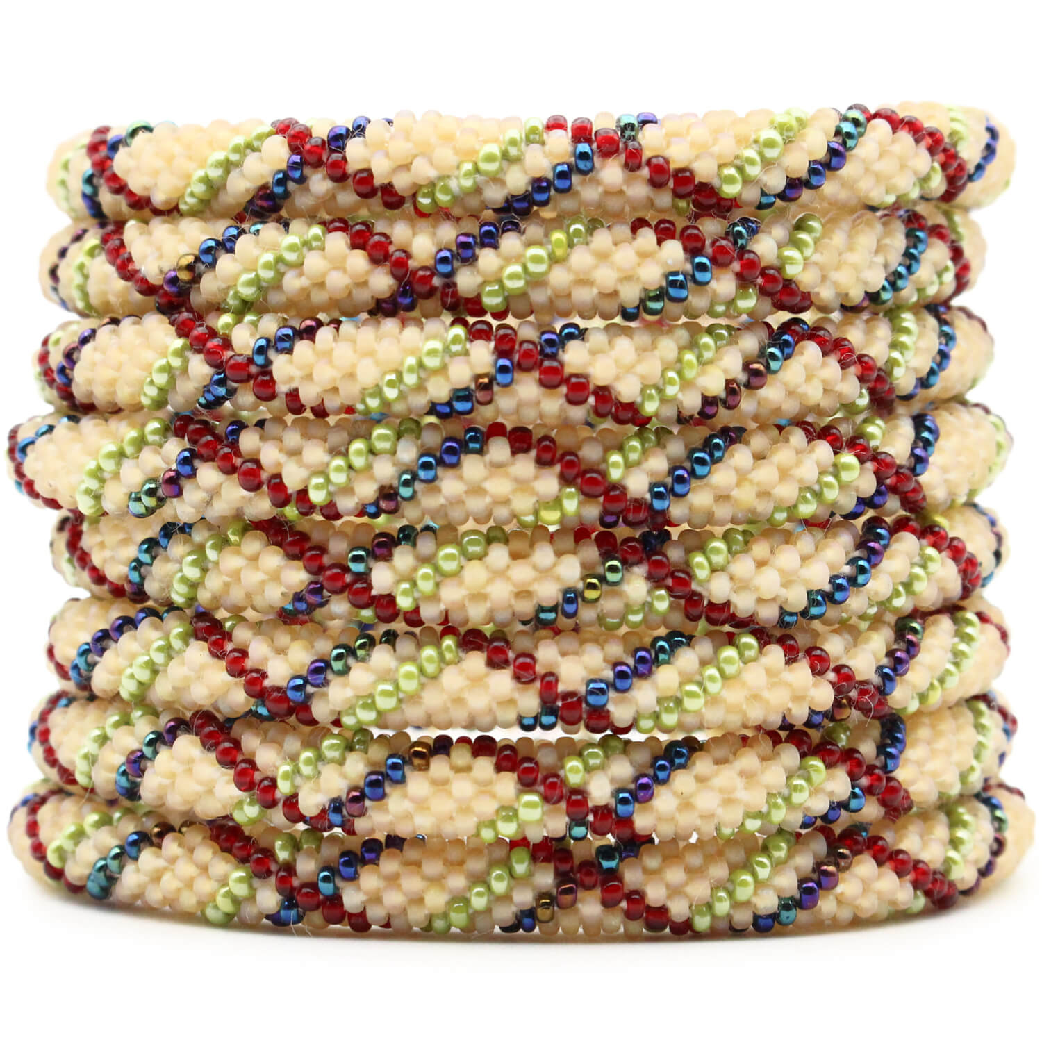 Each glass seed bead is meticulously crocheted in a tubular structure, creating a seamless, durable, and comfortable masterpiece that's perfect for stacking and suitable for all wrist sizes, including plus size jewelry lovers. The metal-free design makes it an ideal arthritis bracelet, ensuring comfort for sensitive skin.