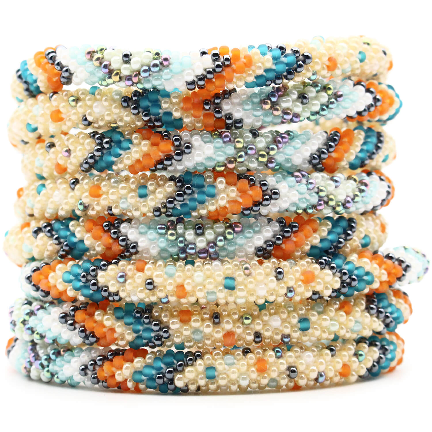 Each glass seed bead is meticulously crocheted in a tubular structure, creating a seamless, durable, and comfortable masterpiece that's perfect for stacking and suitable for all wrist sizes, including plus size jewelry lovers. The metal-free design makes it an ideal arthritis bracelet, ensuring comfort for sensitive skin.