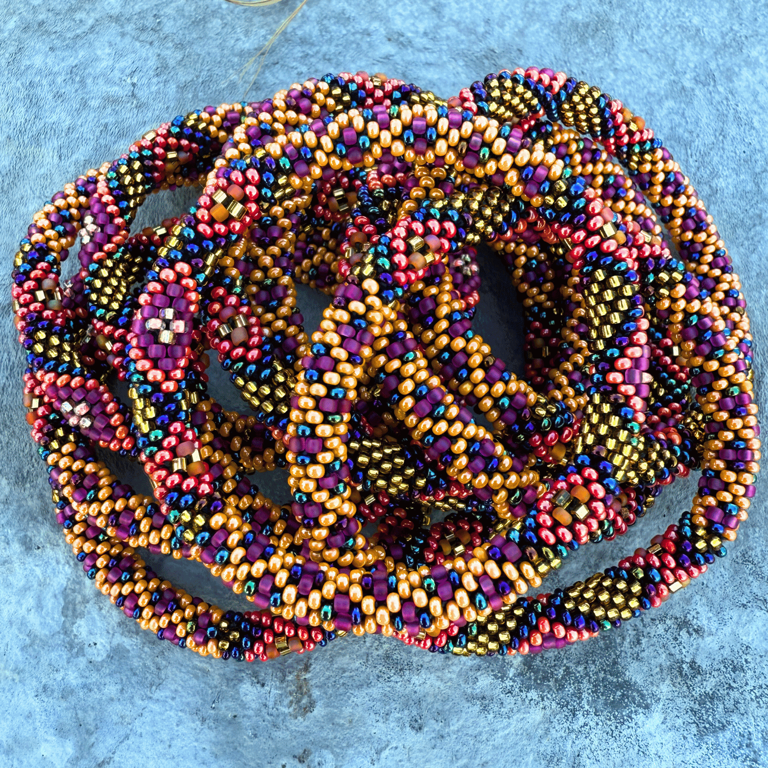 Each glass seed bead is meticulously crocheted in a tubular structure, creating a seamless, durable, and comfortable masterpiece that's perfect for stacking and suitable for all wrist sizes, including plus size jewelry lovers. The metal-free design makes it an ideal arthritis bracelet, ensuring comfort for sensitive skin.