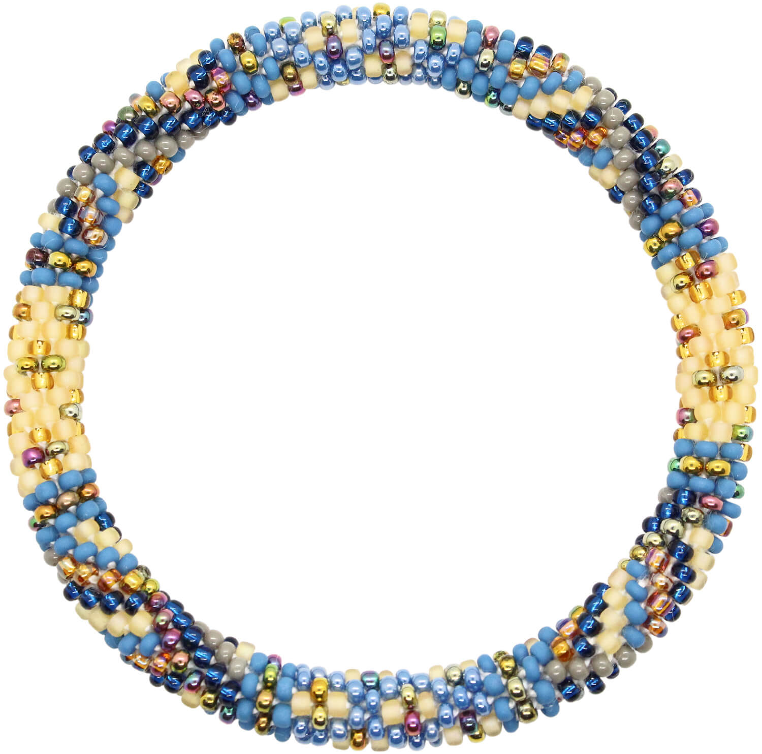 Each glass seed bead is meticulously crocheted in a tubular structure, creating a seamless, durable, and comfortable masterpiece that's perfect for stacking and suitable for all wrist sizes, including plus size jewelry lovers. The metal-free design makes it an ideal arthritis bracelet, ensuring comfort for sensitive skin.