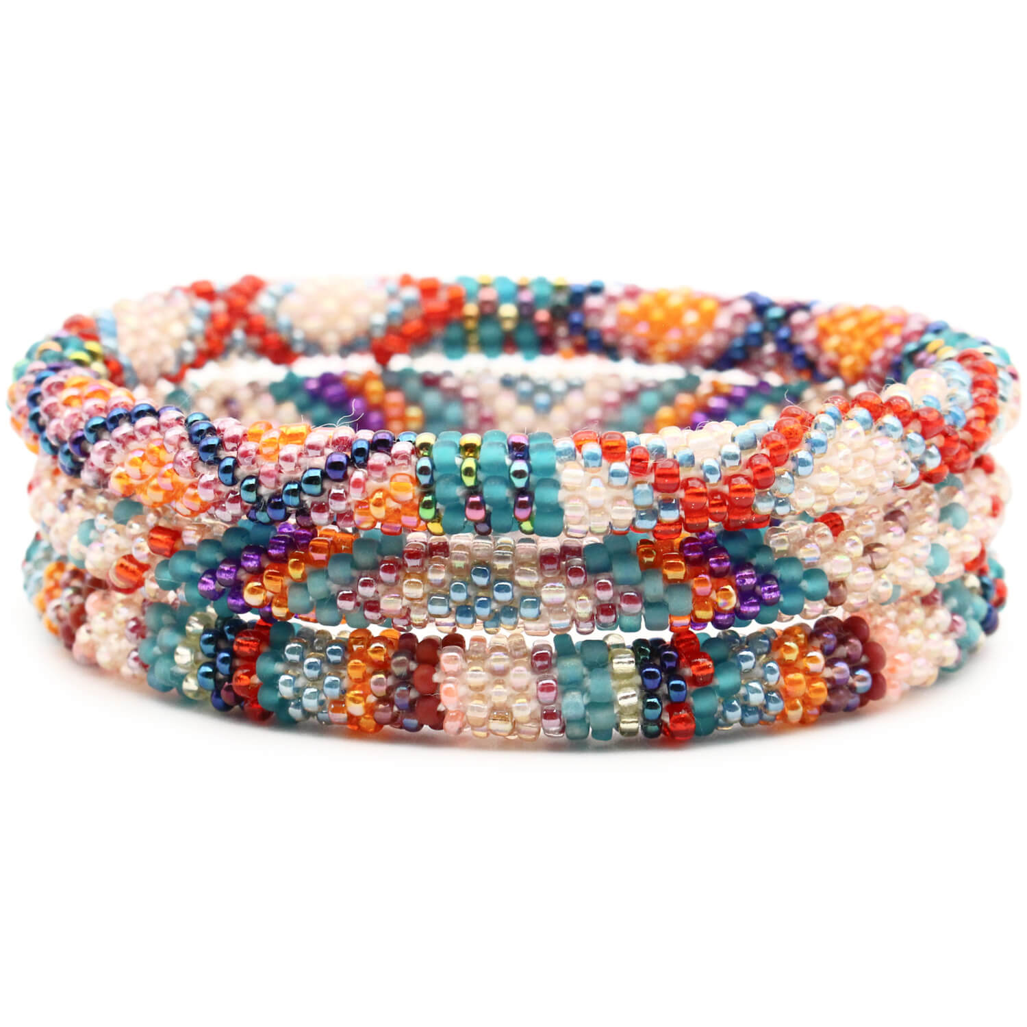 Each glass seed bead is meticulously crocheted in a tubular structure, creating a seamless, durable, and comfortable masterpiece that's perfect for stacking and suitable for all wrist sizes, including plus size jewelry lovers. The metal-free design makes it an ideal arthritis bracelet, ensuring comfort for sensitive skin.