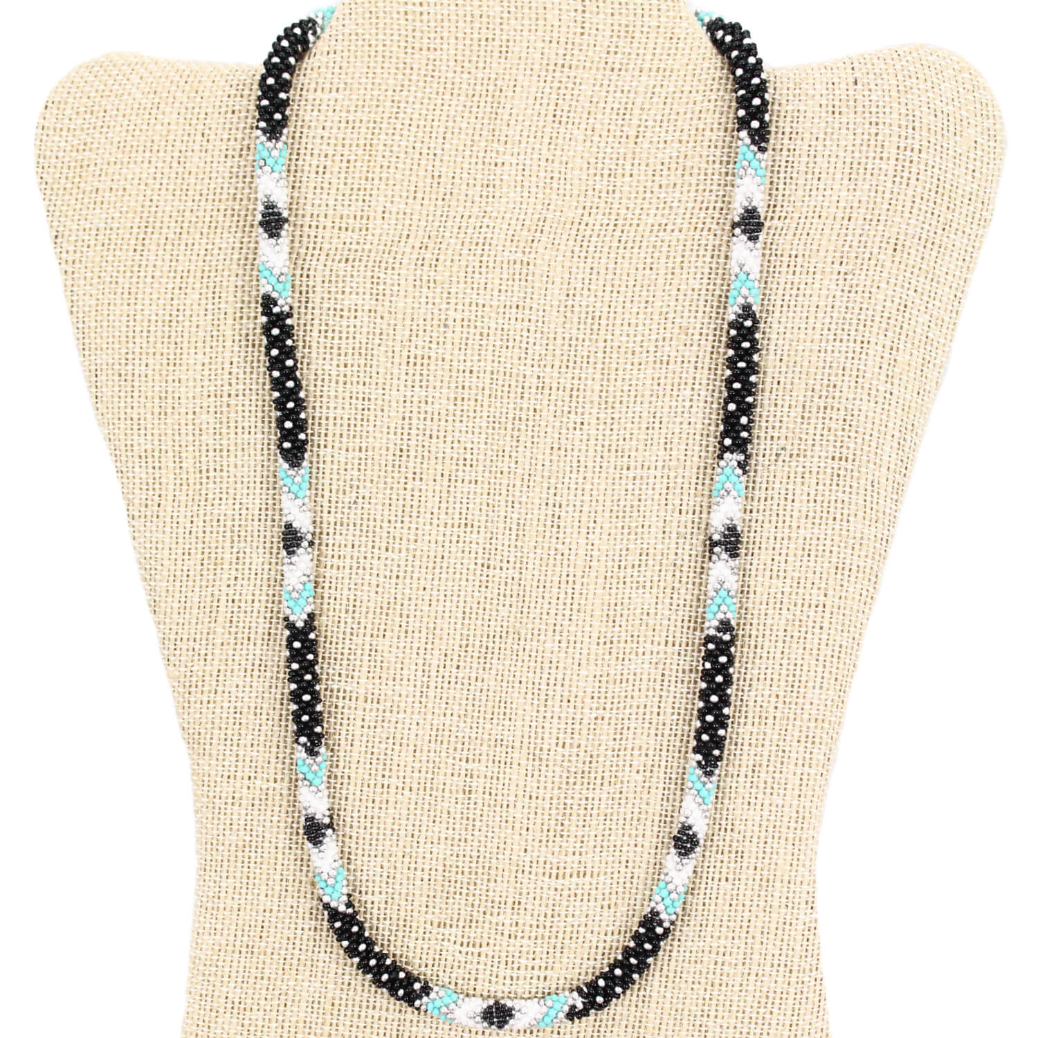 Hand patterned and then crocheted one bead at a time, the Road to Machu Picchu Silver 24" Single-Layer Necklace brings modern global style together with a traditional beadworking technique.