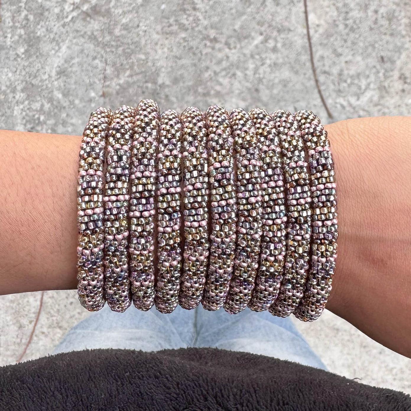 Each glass seed bead is meticulously crocheted in a tubular structure, creating a seamless, durable, and comfortable masterpiece that's perfect for stacking and suitable for all wrist sizes, including plus size jewelry lovers. The metal-free design makes it an ideal arthritis bracelet, ensuring comfort for sensitive skin.