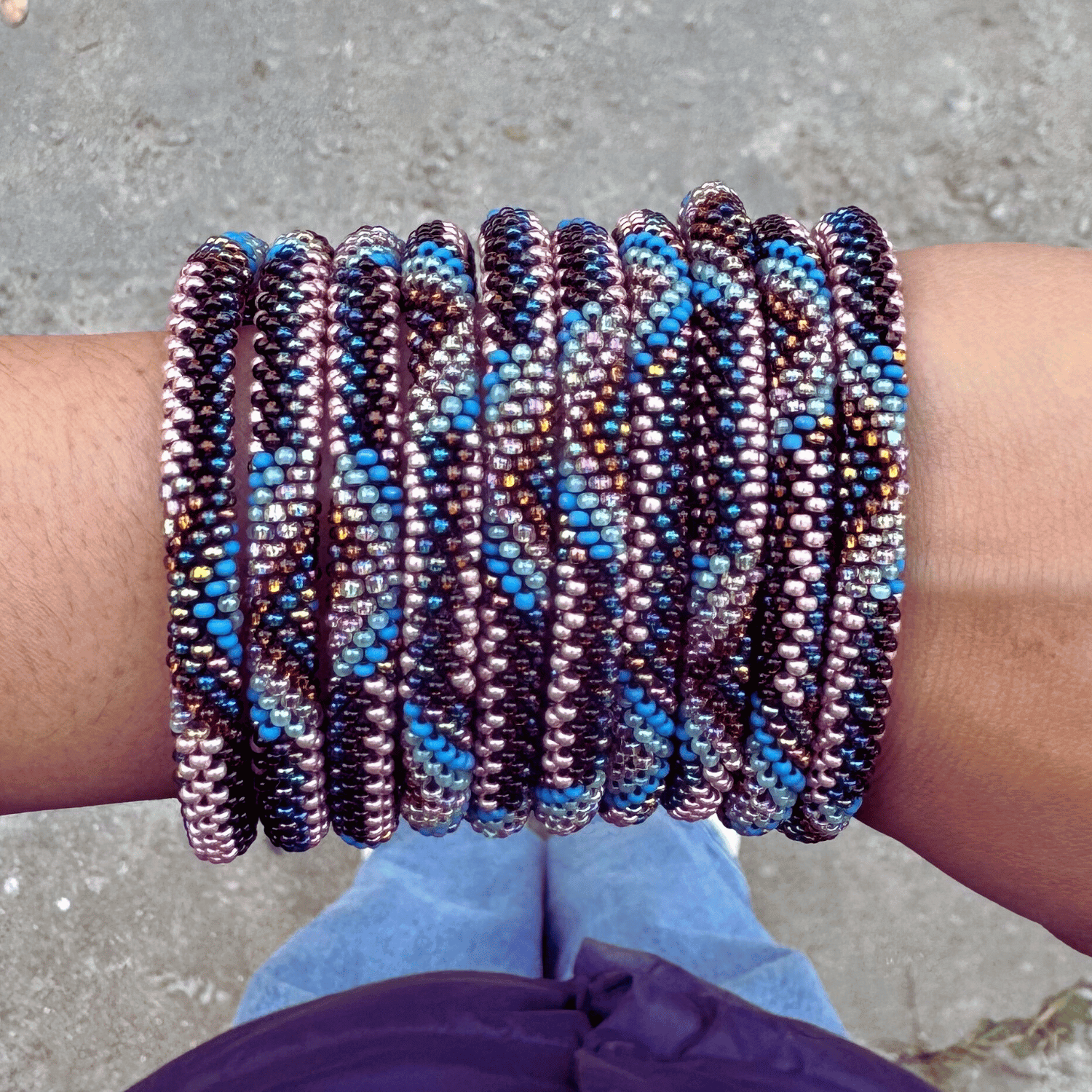 Each glass seed bead is crocheted into a seamless tubular structure — flexible, metal-free, and delightfully comfortable — perfect for stacking and made to fit a wide range of wrists (including plus-size jewelry lovers). Many of our customers also love the soft structure as an arthritis-friendly option.