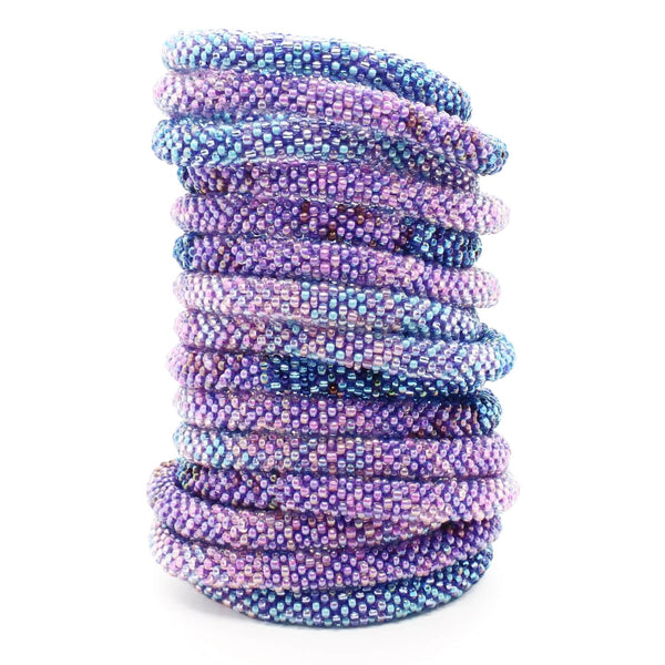 Thoughtfully designed one bead at a time and durably crocheted to comfortably roll onto the wrist, each Lotus Sky bracelet is an original piece of beadwork art meant to spark joy!